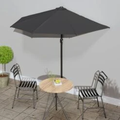 Questo elegante ombrellone da balcone è la scelta perfetta per creare un po’ d’ombra e proteggervi dai dannosi raggi UV del sole. Il telo di questo parasole è realizzato in poliestere resistente ai raggi UV e anti-sbiadimento, offre una protezione ottimale contro il sole ed è molto facile da pulire. Il palo ha un diametro di 38 mm e può essere inserito sulla base o nei fori presenti al centro dei tavoli da giardino. La forma semicircolare arricchisce lo stile unico del parasole. Il robusto palo in legno, in combinazione con i 5 resistenti braccetti, rende l’ombrellone molto stabile e durevole. Il nostro ombrellone può essere facilmente aperto e richiuso grazie al meccanismo a manovella. Questo articolo è facile da assemblare. Si prega di notare che il supporto non è incluso nella consegna. Si consiglia di trattare il tessuto dell’ombrellone con uno spray impermeabilizzante se sottoposto a forti piogge.