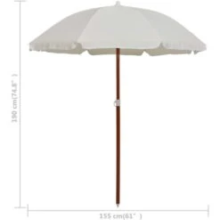 È realizzato in poliestere protettivo UV e anti-sbiadimento. Il parasole offre una protezione ottimale contro il sole ed è facile da pulire. Il palo robusto in acciaio con rivestimento color legno e 8 nervature rende l’ombrellone stabile e resistente.