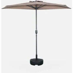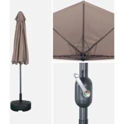 Questo mezzo ombrellone è molto pratico, pensato per gli spazi ridotti perché occupa pochissimo spazio. Con una densità di 180g/m², il suo tessuto in poliestere offre una protezione di qualità contro i raggi UV (50+). Questo mezzo ombrellone si monta a parete e può essere fissato alla sua mezza base (PUHALF180BASE, non inclusa). L’asta in alluminio è robusta. L’apertura è facile e sicura grazie alla manovella antiritorno.