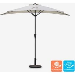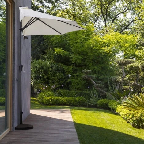 Si sa, le case moderne hanno spazi sempre più contenuti, soprattutto se si tratta di spazi all’aperto: l’ombrellone a muro Kailua è pensato proprio per soddisfare l’esigenza di chi non vuole rinunciare al comfort dell’aria aperta anche se vive in città e ha a disposizione uno spazio esterno ristretto. Comodo e pratico da utilizzare, questo ombrellone si distingue per la sua forma semi circolare e il lato lineare che consente di poggiarlo direttamente al muro per ombreggiare l’area desiderata e ridurre così la metà dell’ingombro. Dotato di apertura a manovella e di un resistente palo in acciaio di alta qualità , l’ombrellone Kailua è realizzato per durare a lungo nel tempo e la sua apertura di 2 x 1,50 metri protegge la pelle in modo efficace dal calore e dai raggi UV. Alla resistente asta dell’ombrellone si combina il raffinato telo beige in poliestere dalla grammatura spessa e sostenuto dalle 6 stecche rinforzate antivento che assicurano un posto sempre fresco e gradevole per numerose estati.