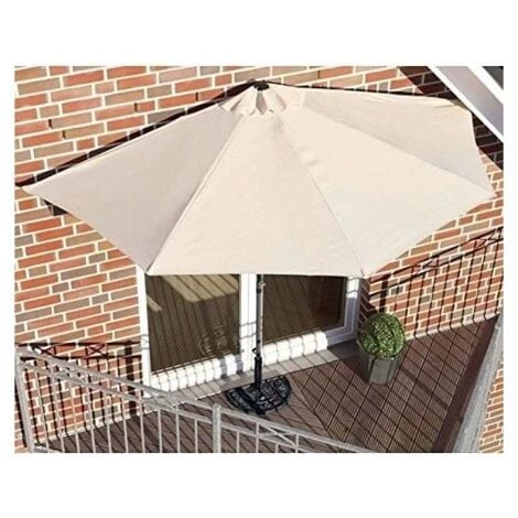 Elegante ombrellone da parete da posizionare a muro dalla forma rotonda mezza luna con diametro 2.7 metri, palo portante 3.6 cm.