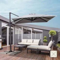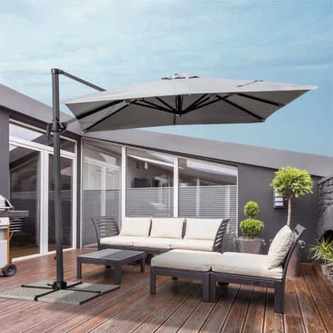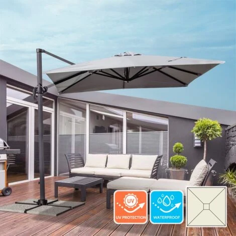 Ombrellone quadrato con braccio laterale da 2,5×2,5 metri, struttura in alluminio e tessuto impermeabile, perfetto per arredare i giardini di bar, ristoranti ed hotel, disponibile con balza e senza balza, ideale per rilassarsi e passare momenti di relax