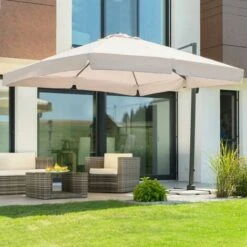1 x Ombrellone Giardino Decentrato Senso Flap 3×3 Alluminio Inclinabile Girevole Ecru