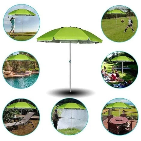 Questo bellissimo ombrellone da spiaggia ha un diametro di apertura di ben 210 cm ed è fornito di una solida struttura a 8 rami in metallo con palo spessorato da 28/32 mm in alluminio con inclinatura regolabile che permette di dirigere l’ombra secondo le proprie esigenze.