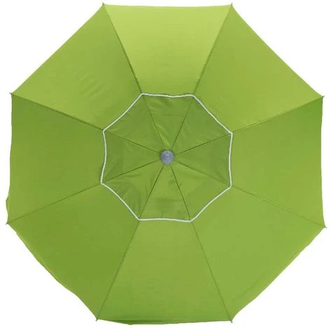 Dotato di prese d’aria superiori che impediscono accumuli di calore sotto l’ombrellone ed evitano che l’ombrellone voli via in caso di forti venti