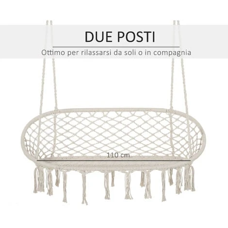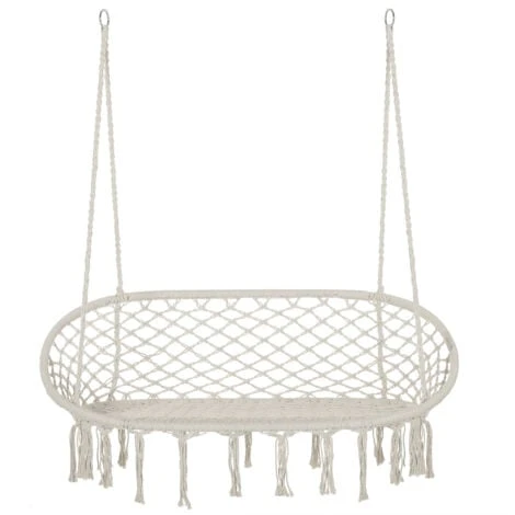 - – Dondolo da giardino appeso con seduta a rete in macramè e anelli per il fissaggio