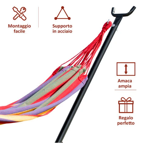 Se anche tu sogni le vacanze tutto l’anno, da oggi puoi creare un’atmosfera caraibica direttamente a casa tua con questo dondolo sospeso da giardino con supporto autoportante. Costruita in cotone traspirante e colorato, l’amaca è regolabile in altezza ed è perfetta per rilassarsi all’aria aperta. Magari non avrai la spiaggia o la brezza del mare, ma di sicuro avrai davanti a te ore e ore di puro relax da trascorrere direttamente nel tuo giardino. La tua oasi di relax personale.