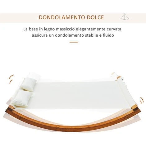 L’amaca da giardino Outsunny è quello che ti serve per goderti le giornate all’aperto! Puoi posizionarla dove vuoi, come lettino a dondolo in giardino al sole o all’ombra. Questa amaca con struttura in legno di larice russo di alta qualità è resistente e sicura, e può ospitare 2 persone. Rilassati, leggi un libro o prendi il sole su questa amaca autoportante, non solo è comoda ma è un complemento d’arredo perfetto per il tuo giardino!