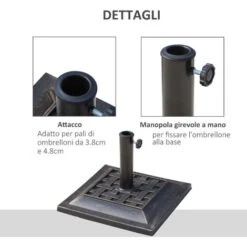 - • Include blocco a vite per fissare saldamente il palo dell’ombrellone alla base