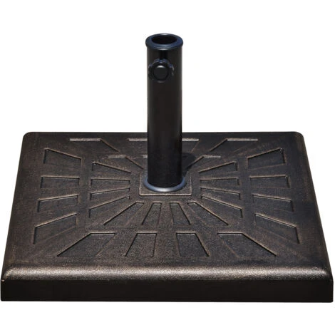 Questa base per ombrelloni da giardino Outsunny è adatta per pali di diametro da 3,8 a 4,8cm. La base è in resina pesante resistente agli agenti atmosferici e ha un elegante effetto bronzo. Facile da montare e utilizzare, questa base di appoggio per ombrellone è ideale per ogni giardino, balcone e terrazzo.