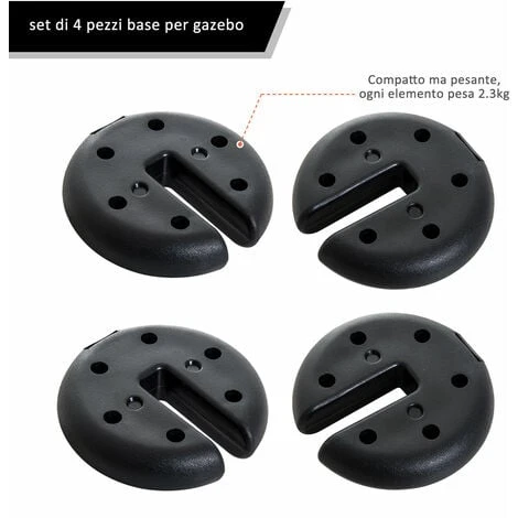 Questa base per gazebo Outsunny con set da 4 pezzi evita che il tuo gazebo venga portato via dal vento. Ideale per gazebo con tubi quadrati di misura da 20×20 mm a 30×30 mm. Realizzato in plastica PE e cemento, è molto resistente e durevole. Dal design compatto, facile da trasportare riporre.