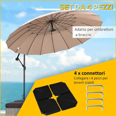 - • La base per ombrellone in plastica da quattro pezzi tiene stabili ombrelloni a braccio