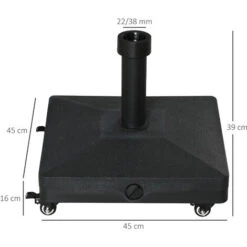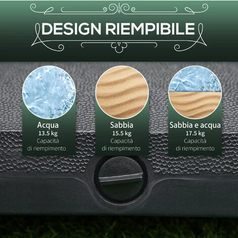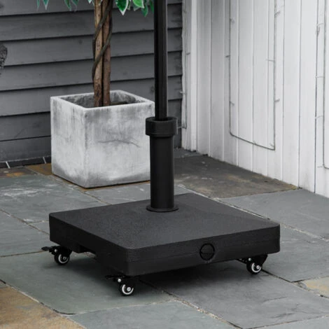 Tieni il tuo ombrellone sempre in posizione con il nostro basamento Outsunny. La struttura in plastica HDPE è resistente alle intemperie e può essere riempita con acqua o sabbia per renderla più stabile. Le 4 ruote integrate ti permettono di spostare la base per ombrellone ovunque hai bisogno di restare al riparo dal sole.
