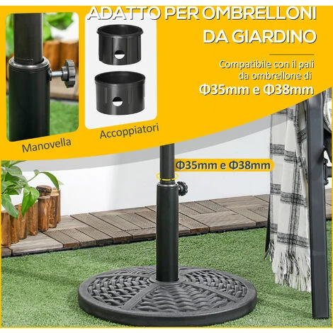 - • Nota: misurare il palo dell’ombrellone da giardino prima di acquistare questa base, per assicurarsi che sia compatibile;