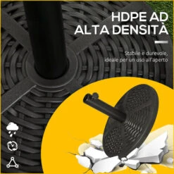 Approfitta dei tuoi spazi all’aperto grazie al supporto per ombrellone Outsunny. Questa base per ombrellone è adatta sia ai pali con diametro di 38 mm che di 48 mm, ed è riempita con cemento per garantire la massima stabilità. Grazie alla sua decorazione in stile rattan, questo basamento aggiunge un tocco di fascino ed eleganza a qualsiasi patio.