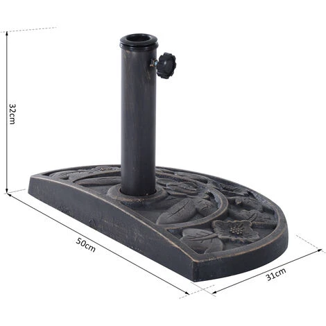 Se desiderate avere un ombrellone nel vostro giardino non potrete rinunciare alla comodità offerta da una base d’appoggio. Una pratica aggiunta al tuo cortile o al tuo patio, questa base per ombrellone mantiene il tuo ombrellone stabile senza il bisogno di essere riempito con acqua o sabbia. Resistente agli agenti atmosferici, supporta ombrelloni con diametro fra 3,8 e 4,8cm. Questa base di appoggio per ombrellone include una manovella per fissare meglio l’ombrellone.