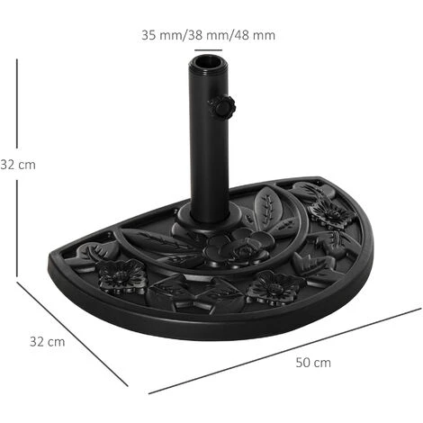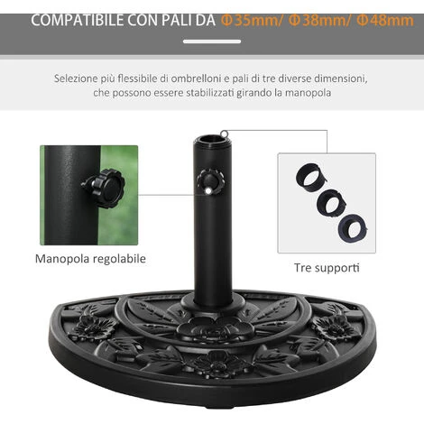 Questa base per ombrellone Outsunny è adatta per ombrelloni dal diametro di 35mm / 38mm / 48mm. È realizzata di HDPE, cemento e metallo ed è resistente alle intemperie. Questa base di appoggio per ombrellone ha un motivo floreale perfetto per l’uso all’aperto. Il peso da 10 kg evita che venga portata via dal vento.