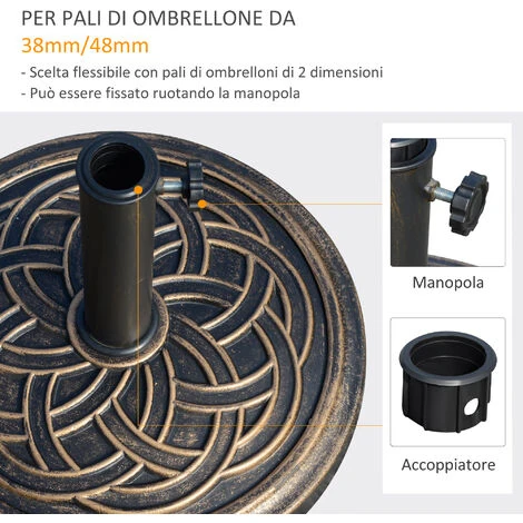 - • Adatta per pali di ombrellone da 38mm e 48mm