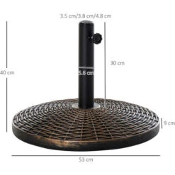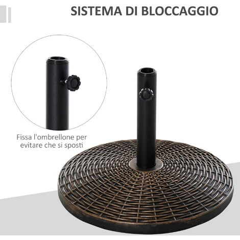 Puoi goderti comodamente la vita all’aperto con questa elegante base per ombrellone in bronzo anticato. È intagliata con un disegno in stile rattan che starà benissimo nel tuo giardino o sul tuo balcone. Abbinando l’ombrellone con un tavolo e le sedie puoi creare un’oasi di relax. È in grado di tenere il tuo ombrellone in posizione in modo sicuro e costante, per offriti tutta l’ombra che serve. Goditi le tue giornate all’ombra grazie a questa pratica base per ombrellone.