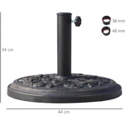 Questa base per ombrellone è un complemento irrinunciabile per il tuo giardino. Garantisce la massima stabilità dell’ombrellone impedendogli di cadere o essere portato via dal vento. La base ombrellone è realizzata in resina di alta qualità lavorata nei minimi dettagli. Questa base di appoggio per ombrellone è resistente agli agenti atmosferici ed è adatta per ombrelloni con pali di diametro 38 mm e 48 mm.