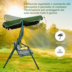 Stai cercando il luogo perfetto per riposarti all’aria aperta, godendo delle belle giornate di sole? Allora questo dondolo a 3 posti Outsunny è quello che stai cercando! Il cuscino e il tettuccio sono coordinati, e progettati per il tuo benessere: la copertura è mobile, e puoi regolarla in base alle tue esigenze; mentre il cuscino e lo schienale sono extra imbottiti, per offrirti una seduta comoda. Cambia il tuo modo di vivere il giardino con questo fantastico dondolo colorato!