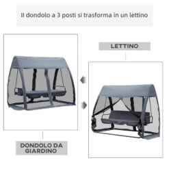 Vuoi rilassarti in giardino? Allora non puoi perdere questo fantastico dondolo letto da 3 posti, l’accessorio irrinunciabile per passare l’estate all’aperto. Grazie alla sua struttura innovativa, lo trasformi in un comodo letto ribaltando lo schienale. La struttura ha zanzariera che ti protegge dagli insetti e ti offre una buona circolazione dell’aria.