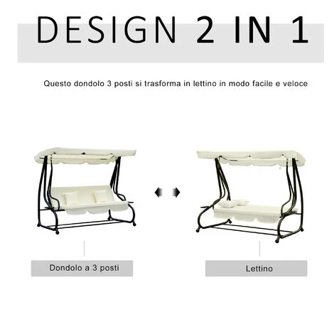 Dondolo reclinabile dal design classico e senza tempo, si integra in qualsiasi giardino, balcone, veranda. Con struttura in acciaio verniciata a polvere. Lo schienale è reclinabile, può trasformarsi in un comodo lettino. Il tettuccio può essere regolato così da avere sempre un gradevole posto all’ombra. Realizzato in tessuto poliestere ad elevata resistenza. Resistente al maltempo e di facile manutenzione.