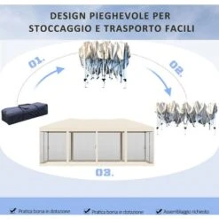 Goditi l’estate all’aperto con questo fantastico gazebo Outsunny. 6 pareti con zanzariera rimovibili. Il resistente tetto in polietilene protegge dal calore e dalla pioggia. Porta principale con chiusura a cerniera. Le pareti laterali possono essere collegate tramite velcro. Telaio in acciaio antiruggine, facile da aprire e chiudere. Include una borsa per il trasporto.