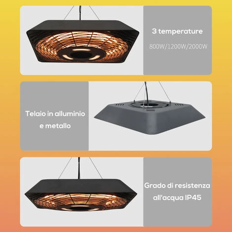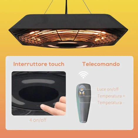 Scalda le serate all’aperto nella stagione fredda con la lampada riscaldante per esterno Outsunny. Realizzata per durare nel tempo e garantire sicurezza, è adatta per essere usata non solo come sistema di riscaldamento per esterni ma anche come luce. Il suo design moderno e minimalista si abbinerà perfettamente ai tuoi spazi all’aperto