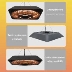 - – Lampada alogena riscaldante a 3 livelli da 800W, 1200W e 2000W
