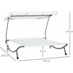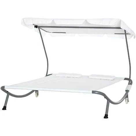 Lettino biposto stabile e comodo realizzato in tessuto traspirante di prima qualità! Il suo design dalle linee morbide, moderne e accattivanti, ne fanno oltre ad un posto ottimo per rilassarsi e prendere il sole, un oggetto d’arredo perfetto per abbellire il vostro giardino o il vostro terrazzo. Dispone di un tettuccio pratico rimovibile e regolabile in angolazione per una protezione ottimale dal sole. Facile da spostare grazie alle rotelle.