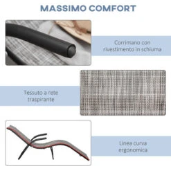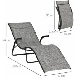 Goditi il tempo libero all’aperto con questa sedia a sdraio relax di Outsunny! La combinazione del telaio nero con sedile grigio rende questo lettino prendisole semplice ed elegante, aggiungendo un tocco chic ai tuoi esterni. Il design pieghevole è comodo per l’uso quotidiano e la forma ergonomica del lettino unita ai braccioli assicurano un comfort ottimale. Realizzata in tubo di metallo e tessuto a rete traspirante, la chaise longue ti accompagna in ogni momento di relax.