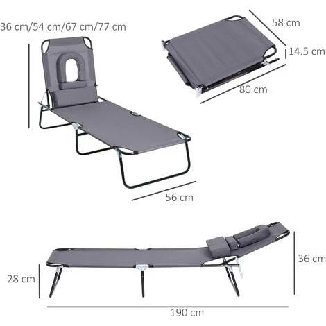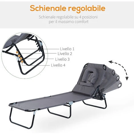 La sdraio da giardino pieghevole Outsunny ti farà compagnia in ogni momento di relax all’aperto. Con il suo solido telaio in acciaio di alta qualità e il rivestimento in tessuto Oxford, il lettino da spiaggia è perfetto da usare in giardino, al mare e a bordo piscina. Il pratico foro per il viso ti permette di rilassarti al massimo anche quando sei a pancia in giù. In più, il design della sdraio da balcone ti permette di trasportarla facilmente dove vuoi.