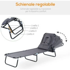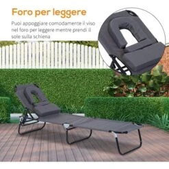 - • Il lettino è ideale per sdraiarsi a pancia in giù, in modo da poter prendere il sole o leggere comodamente
