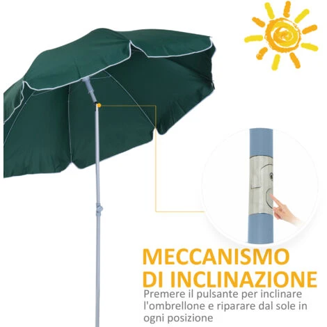 Rilassati all’aperto e riparati sotto al tuo nuovo ombrellone da giardino Outsunny. Ha un ampio tettuccio in poliestere color crema e un palo che puoi smontare in due parti, per portarlo comodamente in spiaggia o in campeggio. La base a punta ti permette di piantarlo direttamente nel terreno o nella sabbia, e di goderti le giornate all’aria aperta senza pensieri.