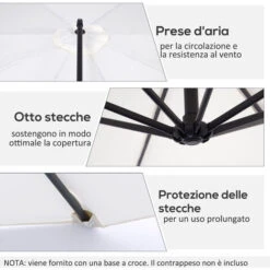 - • La struttura e le stecche dell’ombrellone sono in acciaio verniciato a polvere, un materiale robusto e resistente