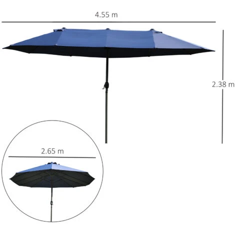 L’ombrellone da giardino doppio di Outsunny è il tuo alleato perfetto per creare un’ampia zona d’ombra nei tuoi spazi aperti. La grande copertura in poliestere protegge dal sole e dai raggi del sole e puoi aprirla e chiuderla facilmente grazie al sistema a manovella. Goditi i tuoi spazi all’aperto in compagnia con questo grande ombrellone per esterno!