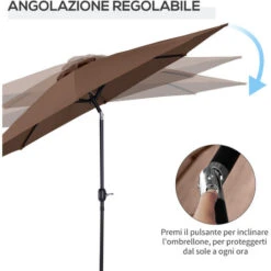 È bello godersi il sole in giardino ma ogni tanto serve anche un po’ d’ombra. L’ombrellone da terrazza e giardino Outsunny ti offre un ampio spazio protetto dal sole in cui rilassarti in compagni. È realizzato con materiali di qualità e resistenti, per durare a lungo nel tempo. Il sistema di apertura a manovella rende facilissimo aprire e chiudere l’ombrellone da esterno.