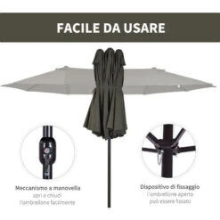 Questo ombrellone grande renderà indimenticabile il vostro pomeriggio in giardino. Perfetto anche per bar, ristoranti, hotel e piscine. Protegge dalla pioggia e dai raggi UV. Realizzato in materiali di elevata qualità e lavorazione di prima classe. Il palo centrale in metallo garantisce la massima stabilità . Telo in tessuto di poliestere idrorepellente, garantisce un’ottima durata nel tempo.