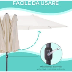 Questo ombrellone grande renderà indimenticabile il vostro pomeriggio in giardino. Perfetto anche per bar, ristoranti, hotel e piscine. Protegge dalla pioggia e dai raggi UV. Realizzato in materiali di elevata qualità e lavorazione di prima classe. Il palo centrale in metallo garantisce la massima stabilità . Telo in tessuto di poliestere idrorepellente, garantisce un’ottima durata nel tempo.