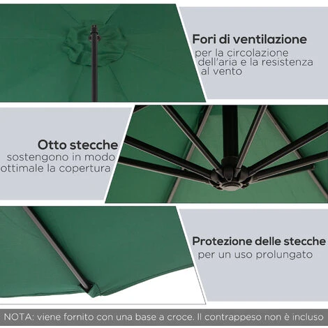 Hai bisogno di più ombra nel tuo giardino? Questo ombrellone Outsunny ha un diametro di 3 metri, ed è la soluzione perfetta per godere di uno spazio ombreggiato anche nelle giornate più calde. Stabile e resistente, è costruito con una struttura in acciaio e una copertura in poliestere, un tessuto impermeabile in grado di filtrare i raggi UV. Quest’estate crea una magica atmosfera nel tuo giardino o nel tuo terrazzo, e goditi le belle giornate in compagnia dei tuoi amici e della tua famiglia!