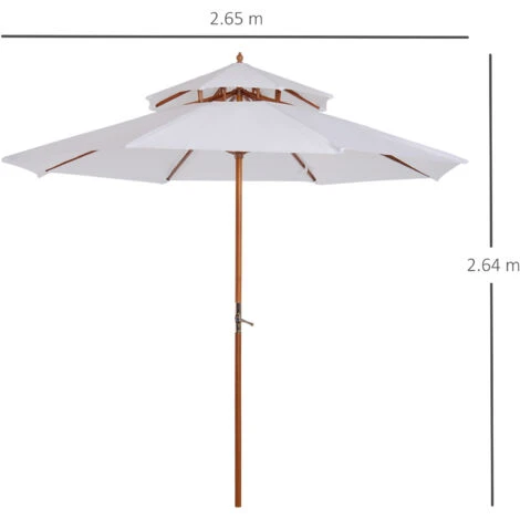 Questo ombrellone parasole di elevata qualità è perfetto per l’uso domestico o commerciale. Ideale per qualsiasi attività in terrazza o in giardino. Struttura in legno resistente e tessuto in poliestere 100% impermeabile. Resistente agli agenti atmosferici. Protezione ottimale contro la pioggia e i raggi UV. Grazie al suo doppio tetto, garantisce una buona circolazione dell’aria. Facile da aprire e chiudere grazie alla manovella. Realizzato in materiali di ottima qualità e lavorazione di prima classe, potrete godere a lungo di questo fantastico ombrellone.