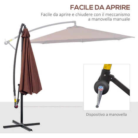 - • Manovella per aprire e chiudere l’ombrellone in pochi secondi