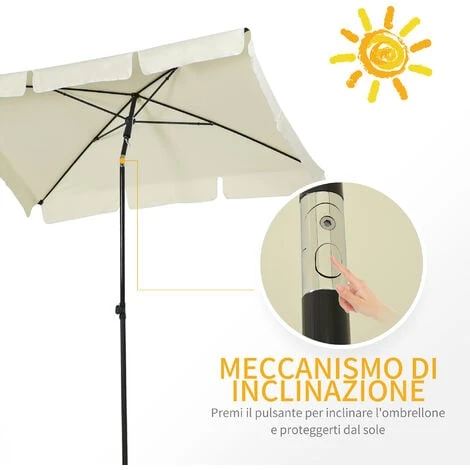 Questo ombrellone per esterno Outsunny porta eleganza e praticità nei tuoi ambienti all’aperto per godersi le belle giornate protetti dal sole. Puoi usarlo come ombrellone da terrazza, per il giardino o nel patio. I materiali di alta qualità assicurano lunga durata e resistenza per l’utilizzo all’aria aperta, proteggendoti efficacemente dai raggi sole e dal sole grazie anche all’inclinazione regolabile. Rendi le tue giornate all’aperto più confortevoli con questo ombrellone!