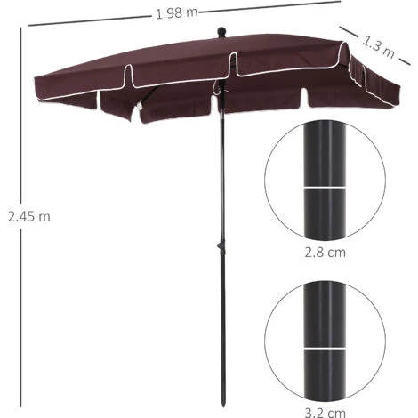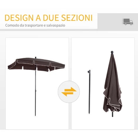 Questo ombrellone per esterno Outsunny porta eleganza e praticità nei tuoi ambienti all’aperto per godersi le belle giornate protetti dal sole. Puoi usarlo come ombrellone da terrazza, per il giardino o nel patio. I materiali di alta qualità assicurano lunga durata e resistenza per l’utilizzo all’aria aperta, proteggendoti efficacemente dai raggi sole e dal sole grazie anche all’inclinazione regolabile. Rendi le tue giornate all’aperto più confortevoli con questo ombrellone!