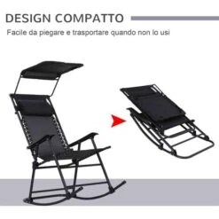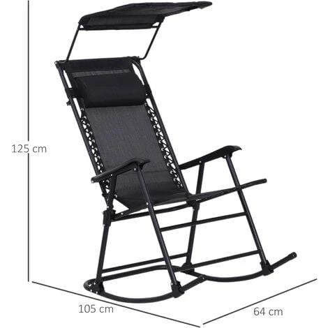 Sedia a dondolo Outsunny dal design elegante, ideale sia per la casa che per il giardino, balcone, ecc. Tessuto a maglia resistente agli agenti atmosferici con sistema di sospensione elastico che aiuta a ridurre la tensione e lo stress muscolare. Ampi braccioli e schienale alto con poggiatesta rimovibile. Il tettuccio superiore è perfetto per proteggersi dai raggi UV. Telaio in acciaio verniciato a polvere, assicura un uso duraturo. Resistente all’acqua. Design pieghevole per una conservazione e spostamento comodi.