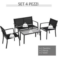 - – Set tavolino e sedie da giardino da 4 pezzi: 1 tavolo, 1 panca e 2 sedie