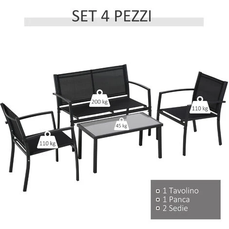 - – Carico massimo: 45kg (tavolo), 110kg (sedia), 200kg (panca)