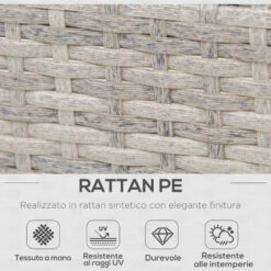 - • Materiali: Acciaio, Rattan sintetico, Poliestere