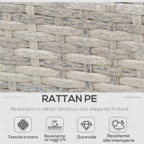 - • Telaio in acciaio e rivestimento in rattan sintetico